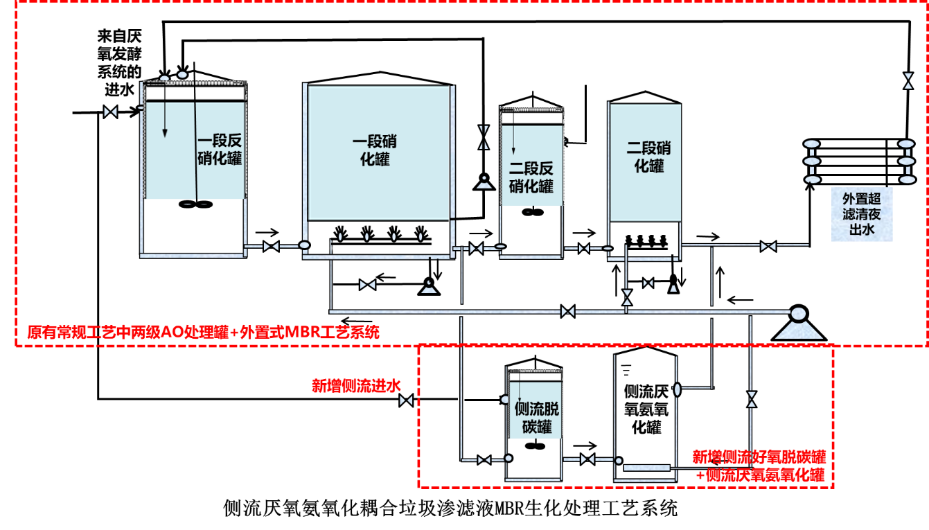 三、 側流(liu)厭氧氨氧化耦(ou)合垃(la)圾滲(shen)濾(lv)液MBR生化處理裝置和工藝