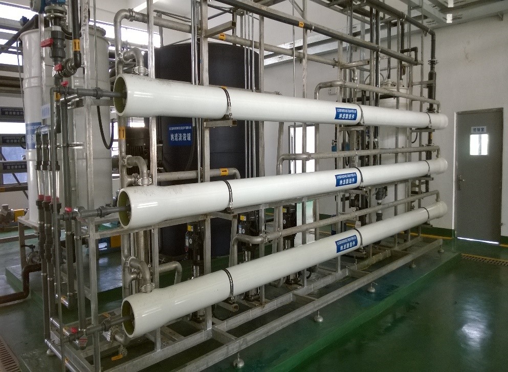 垃圾焚燒廠滲瀝液經過厭氧(yang)+膜生(sheng)物反應(ying)器(qi)系統(MBR)后,出水無菌(jun)體和懸浮物,進入納濾(NF)系統,膜(mo)組件采用螺旋卷式(shi)膜(mo)類型,具有結構簡單,造價較(jiao)低,裝填密(mi)度較(jiao)高,物料交換效果好的優點。對滲瀝液的適(shi)應性很強,膜(mo)壽命延(yan)長到2年以上。